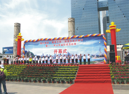 5月14日,“振興老區(qū) 服務(wù)三農(nóng) 科技列車沂蒙行”活動在臨沂市舉行。山東省委常委、副省長孫偉、省政協(xié)副主席李德強(qiáng)出席開幕式。科技部黨組成員、紀(jì)檢組組長郭向遠(yuǎn)出席開幕式,科技部等部委有關(guān)領(lǐng)導(dǎo)、科技列車專家服務(wù)團(tuán)全體成員,臨沂市副市長左沛廷等有關(guān)領(lǐng)導(dǎo)以及社會各界代表也參加了開幕式。