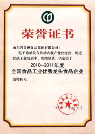會(huì)上,集團(tuán)被中國(guó)食品工業(yè)協(xié)會(huì)授予,“2010-2011年度全國(guó)食品工業(yè)優(yōu)秀龍頭食品企業(yè)”,并頒發(fā)了榮譽(yù)證書和獎(jiǎng)牌。